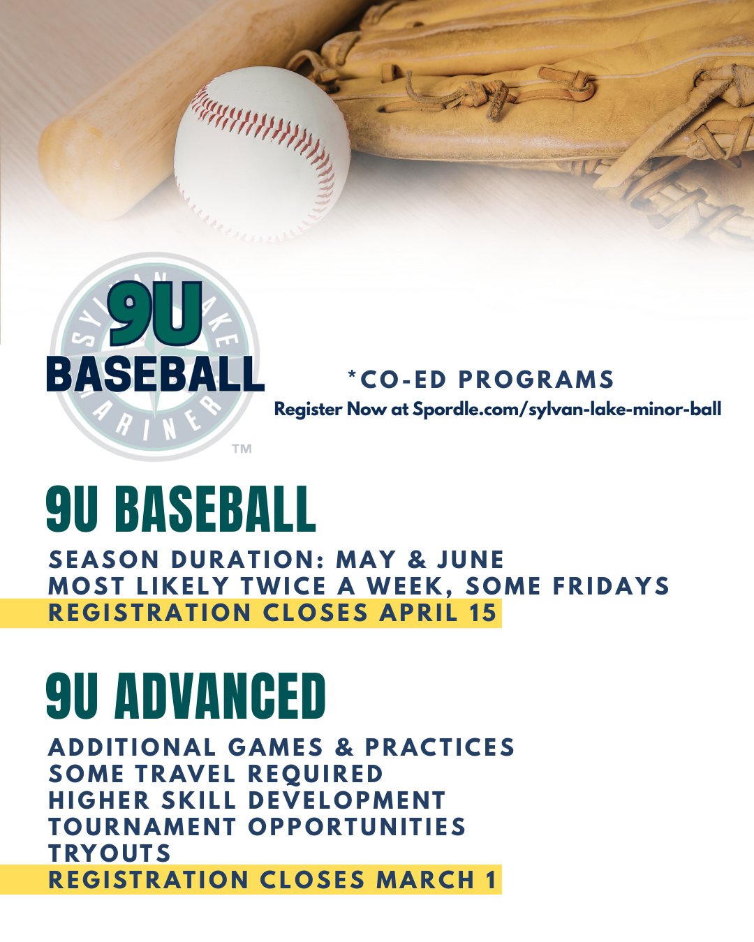There are only two weeks remaining to register for 9U Advanced tryouts. Sign up today at Spordle.com/sylvan-lake-minor-ball